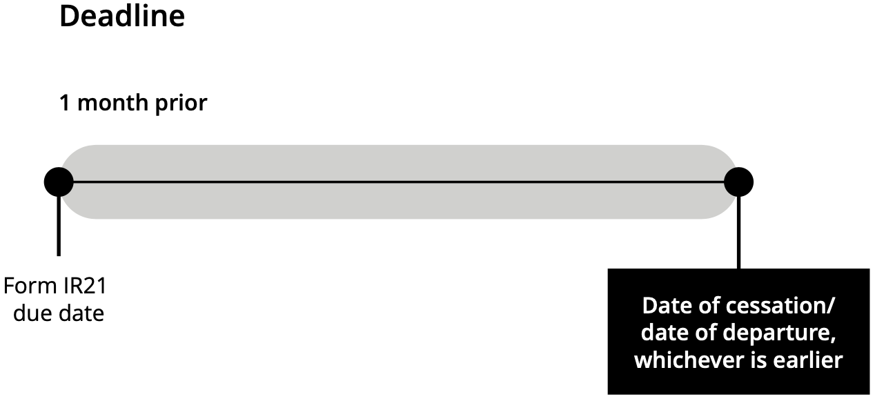 Please see the graph opposite for the deadline of the Form IR21 filing:
